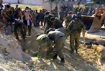 À Jisr al-Choughour un charnier a été mis à jour d’où ont été extraites les dépouilles de dix soldats que les assaillants avaient mutilés.