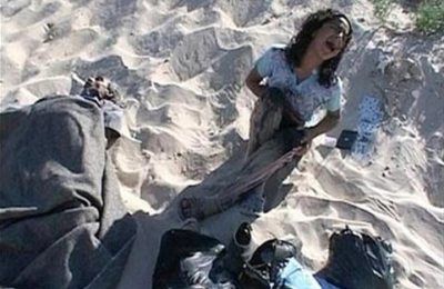 Huda Ghalya aux côtés de son père tué par un tir israélien sur la plage de Gaza, le 9 juin 2006 (Photo : Ramatan News Agency/File)