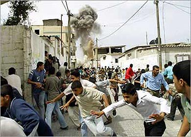 Tariq : À Gaza, le contexte est différent. En Cisjordanie, les villes sont isolées, comme des îles. Les soldats peuvent les encercler, ensuite aller ratisser, maison par maison. À Gaza, l’armée israélienne a peur de pénétrer dans les quartiers, même surarmée comme elle est, car elle s’affronte à une très grande résistance. Il est facile pour les militants de s’échapper. Toute la bande de Gaza est couverte d’habitations ; les villes sont attachées les unes aux autres. Les soldats israéliens attaquent nos quartiers à l’aveugle, à distance, depuis des tanks et des avions. En ce moment, ils nous encerclent par des colonnes de gros chars munis de canons. Ce sont les mêmes canons gigantesques qu’Israël a placé au Sud-Liban. Ces canons ont une portée de 80 kilomètres ; depuis le nord de Gaza, ils peuvent atteindre Rafa. S’ils entrent à Gaza, ce sera la dernière étape. Comme il n’y a plus de colons israéliens susceptibles d’être touchés à l’intérieur de Gaza, ils peuvent maintenant utiliser l’artillerie lourde, les avions de chasse, les canons.