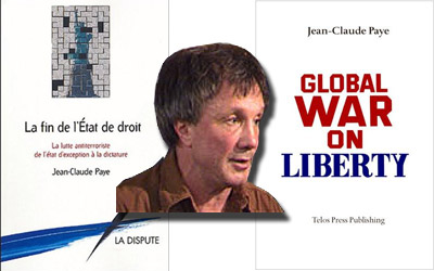 Jean-Claude Paye y sus dos obras: « La fin de l’État de droit » (Éditions de La Dispute, 2004), y « Global War on Liberty » (Telos Press Publishing, 2007.)