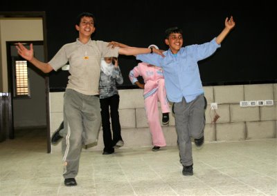 Dans une pièce, un petit garçon, l’iris d’un vert étrangement beau, était tout affairé – après avoir mis la main sur un paquet de bonbons - à s’en remplir le gosier. Dans l’autre pièce, seize enfants de toutes tailles répétaient des pas de danse. Ils faisaient partie du petit groupe d’acteurs du théâtre Al-Rowwad qui allaient bientôt s’envoler vers la France, pour y jouer leur pièce : « Nous sommes les enfants du camp ».