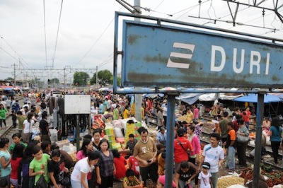 J’ai décidé de prendre le train Commuter [1] , de Manggarai jusqu’à Tangerang, une ville de la banlieue (la même place qui, il y a quelques années, imposa en dehors de toutes les lois mais avec une impunité totale, la charia à la population) pour une simple raison : me rendre compte si il y avait de réels progrès ’en interne’ de ce que beaucoup décrivent comme le véritable fiasco des infrastructures de Jakarta, l’ imbroglio, le casse-tête des embouteillages monstrueux de la ville.