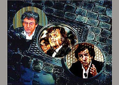 En haut Alain Finkielkraut, en bas Bernard Henri Lévy, et au milieu leur "bête noire" le cinéaste Emir Kusturica